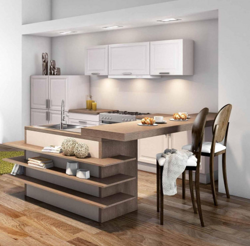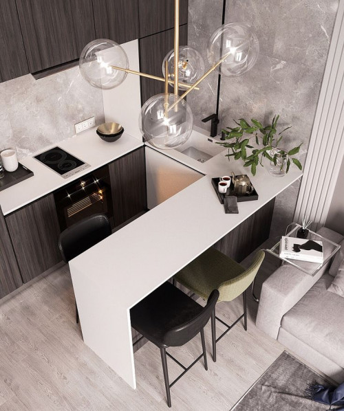 Барная стойка — это интересная и свежая идея для кухонного интерьера, особенно в небольшой кухне. В современной квартире она может выполнять несколько полезных функций. Барную стойку можно использовать как обеденный стол, что особенно удобно для быстрых перекусов или завтраков. Она также может стать местом для подачи закусок и напитков при приеме гостей. Кроме того, барную стойку можно использовать как дополнительную рабочую поверхность для приготовления пищи, что особенно актуально в условиях ограниченного пространства. Таким образом, этот элемент интерьера может значительно повысить функциональность и стиль вашей кухни.