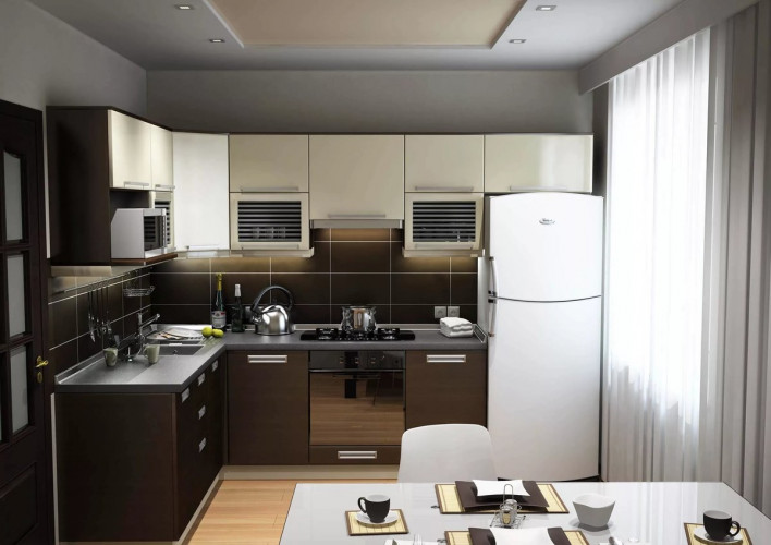 Любой хозяйке хочется, чтобы проект кухни 8 квадратных метров был выполнен тщательно и продумано. Для этого, прежде всего, необходимо определиться со стилем. 8 кв м это совсем не много, поэтому выбирать лучше стиль минимализма. Для него характерно наличие минимального количества мебели и выбор светлых цветов в кухне. Минимальный набор мебели позволит Вам не загромождать пространство, а светлые оттенки сделают визуально помещение больше.